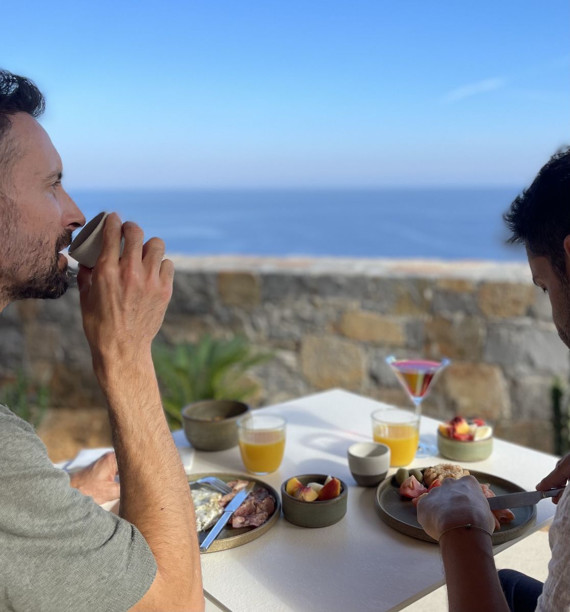Auf einem riesigen Grundstück mit Blick auf eine helle und wilde Bucht, nur wenige Minuten von der kleinen Küstenstadt Agia Pelagia entfernt, atmet Maison Meltem einen Wind des Wohlbefindens, der Ruhe und der Freiheit.