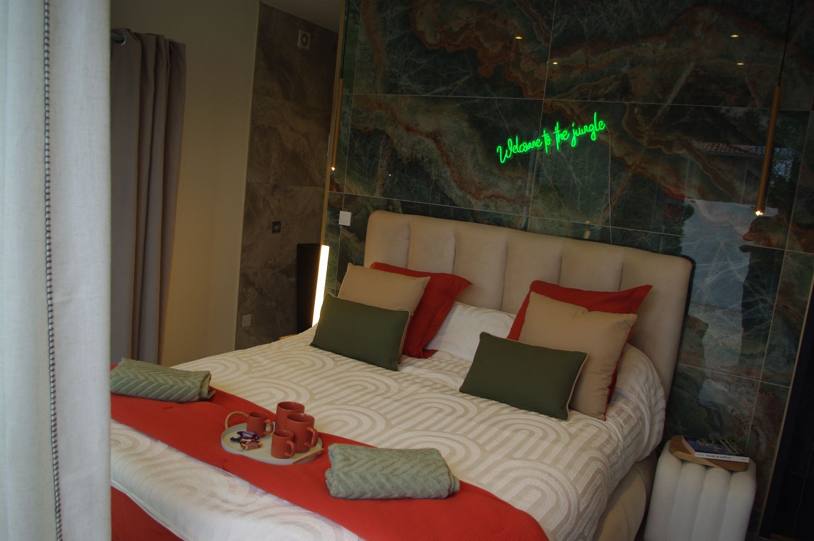 During your stay we offer you, in a fully enclosed residential area, a modern 21m2 air-conditioned suite, which includes a 180x200 king size bed, a dressing room, a bathroom independent of the toilet, a connected flat screen, a mini fridge, a coffee maker, a kettle, this giving access to a private terrace (bath towels included)