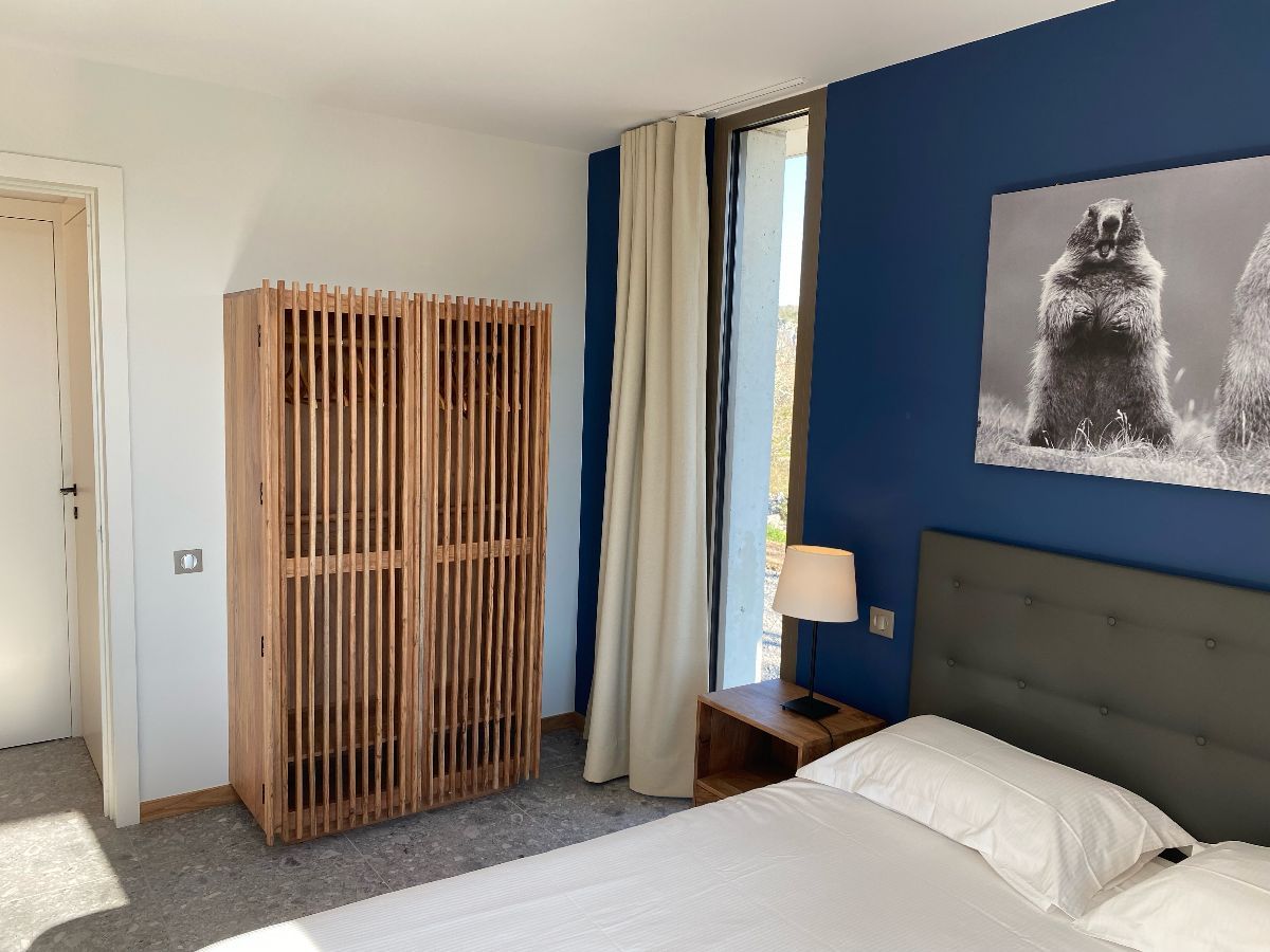 - d'une chambre avec un lit 160 doté d'un matelas d'excellente qualité, quatre oreillers, une penderie ;