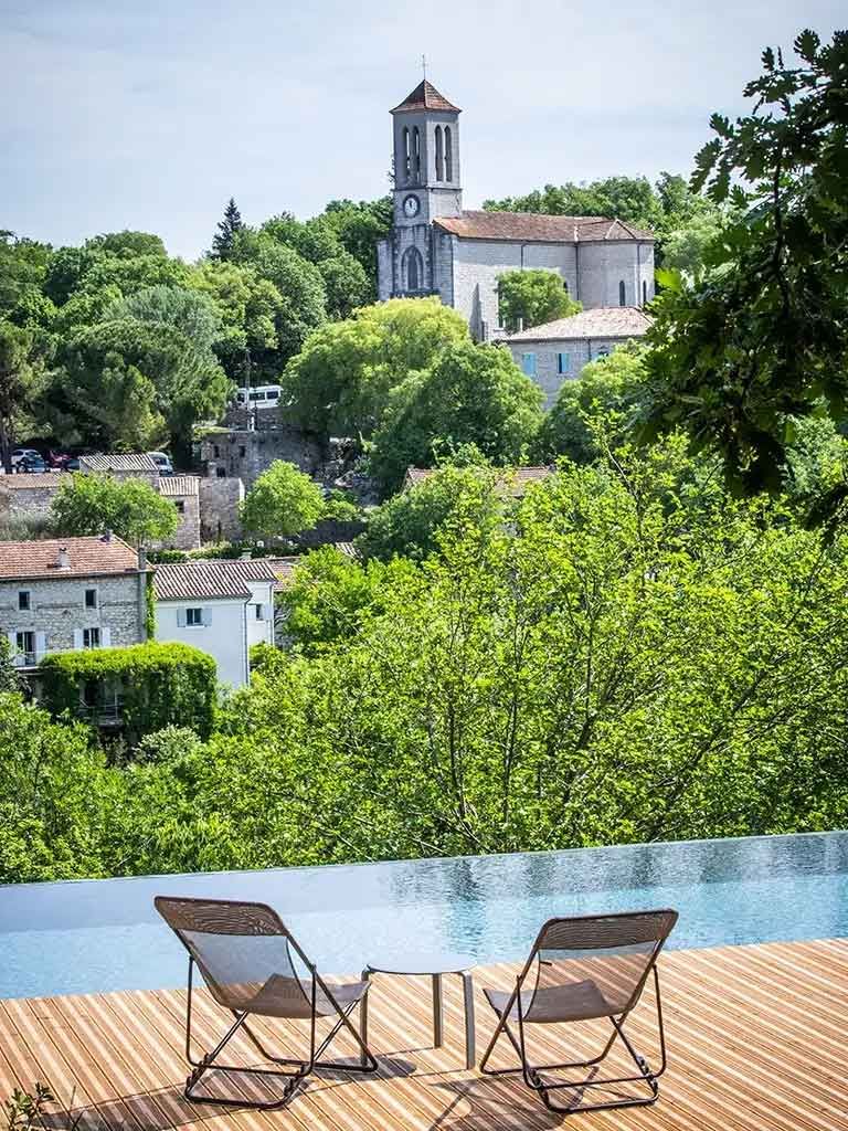 Face à Balazuc, l'un des «plus beaux villages de France», non loin des gorges de l’Ardèche et de la grotte Chauvet, Luc, ancien propriétaire du château de Balazuc, vous propose de poser vos valises dans son gîte classé 5*. Un havre de paix, niché au rez-de-jardin de leur maison à l'architecture contemporaine. Vous profiterez d’une grande terrasse couverte, d’un jardin planté de chênes et de la piscine des propriétaires, un bassin à débordement chauffé avec une vue à couper le souffle ! Naturistes bienvenus.