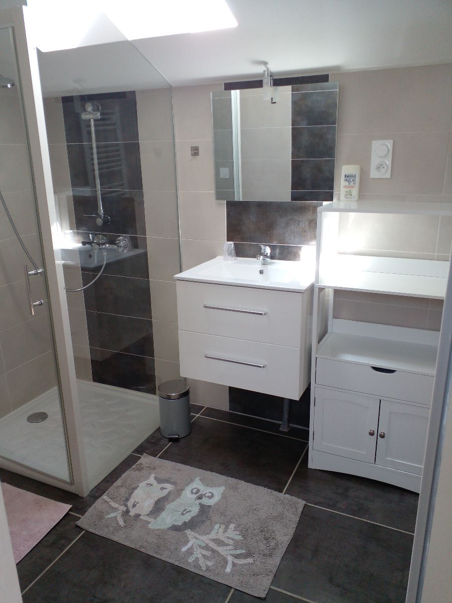 salle d eau avec douche et lavabo . wc separe