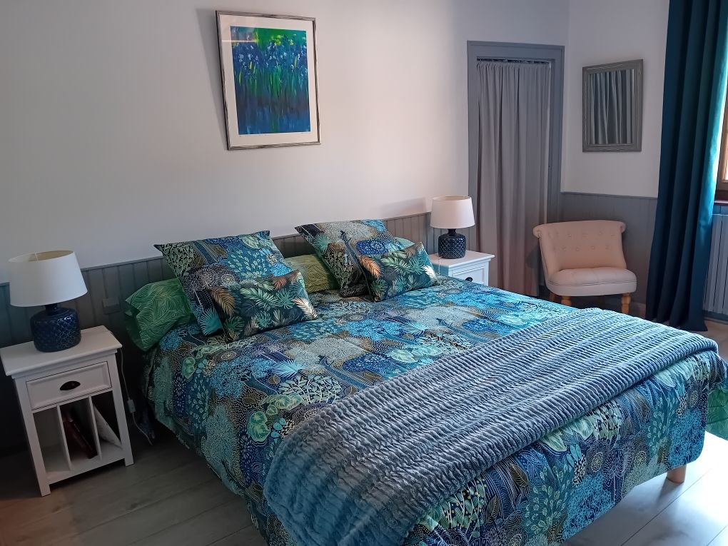 Une seconde chambre "Voyages" de 12 m² dotée d'un lit de 140 x 200 avec vue également sur le jardin. (Salle de bain à partager avec la chambre Iris ou celle du proprio, située à l'étage).