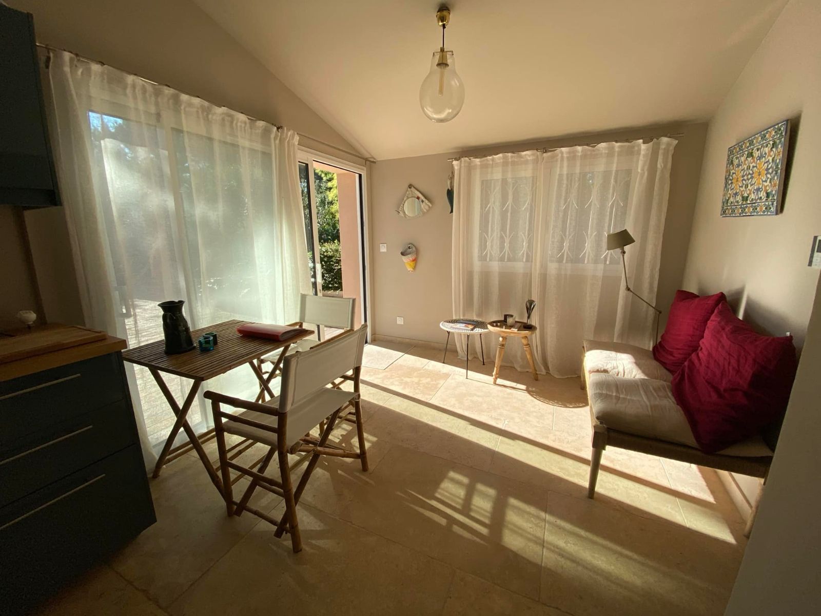 Tutte le aperture si affacciano sul giardino, di cui si può godere. Una terrazza con mobili da giardino è disponibile per prendere il sole, un aperitivo o un pasto all'ombra della pineta. Avrai anche accesso alla piscina della villa e alla sua spiaggia. Senza essere obbligatorio, il naturismo è il benvenuto e regolarmente praticato lì.