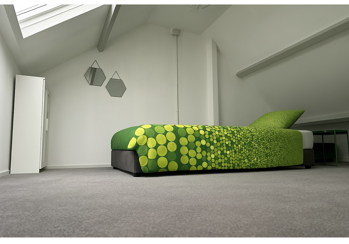 Wij bieden een slaapkamer van 12 m² boven met een tweepersoonsbed in ons huis met terras, tuin en jacuzzi.