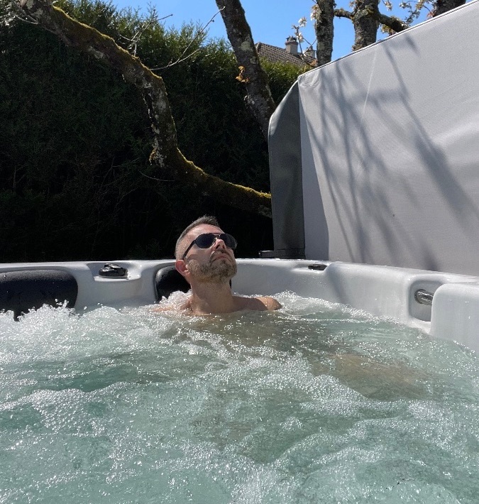 Het huis en de jacuzzi zijn naturistisch, de tuin is daarentegen van textiel.