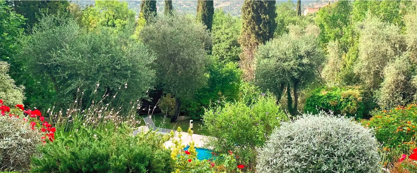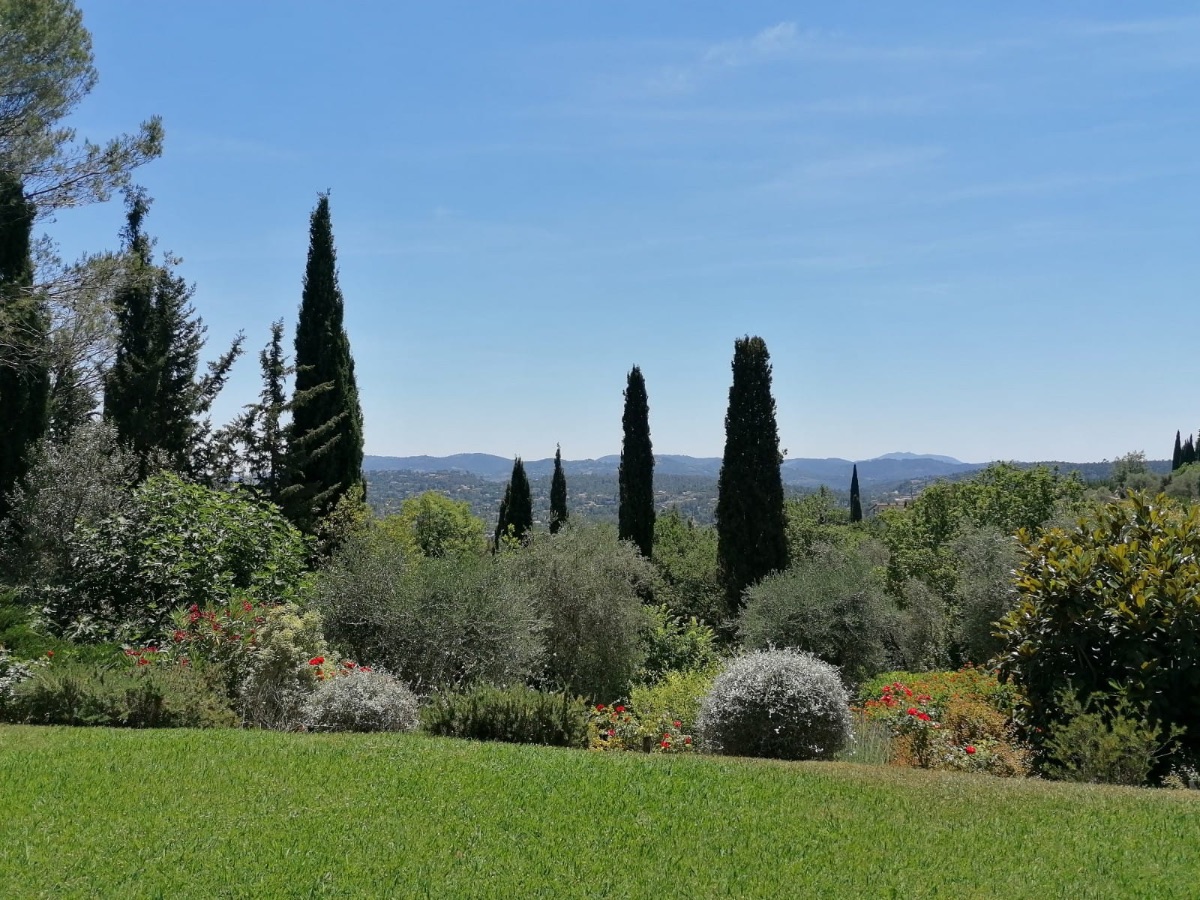 Genießen Sie den Garten in absoluter Ruhe mit Blick auf das Tanneron-Massiv, das Estérel und die Bucht von Cannes.