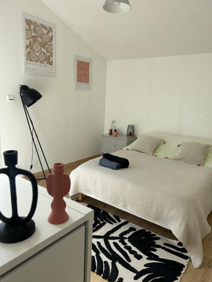 In meinem modernen Haus biete ich ein Gästezimmer an, ausgestattet mit einem Doppelbett, mit separatem Eingang und Parkplatz. Ihr habt Zugang zu Eurem Badezimmer mit Waschbecken, Badewanne-Dusche und WC, alles privat. Das Haus ist mit schnellem WLAN (Glasfaser) ausgestattet. Sehr ruhige Lage für einen erholsamen Aufenthalt.