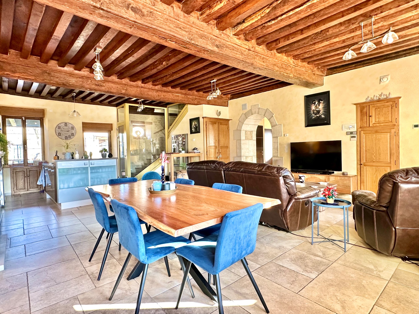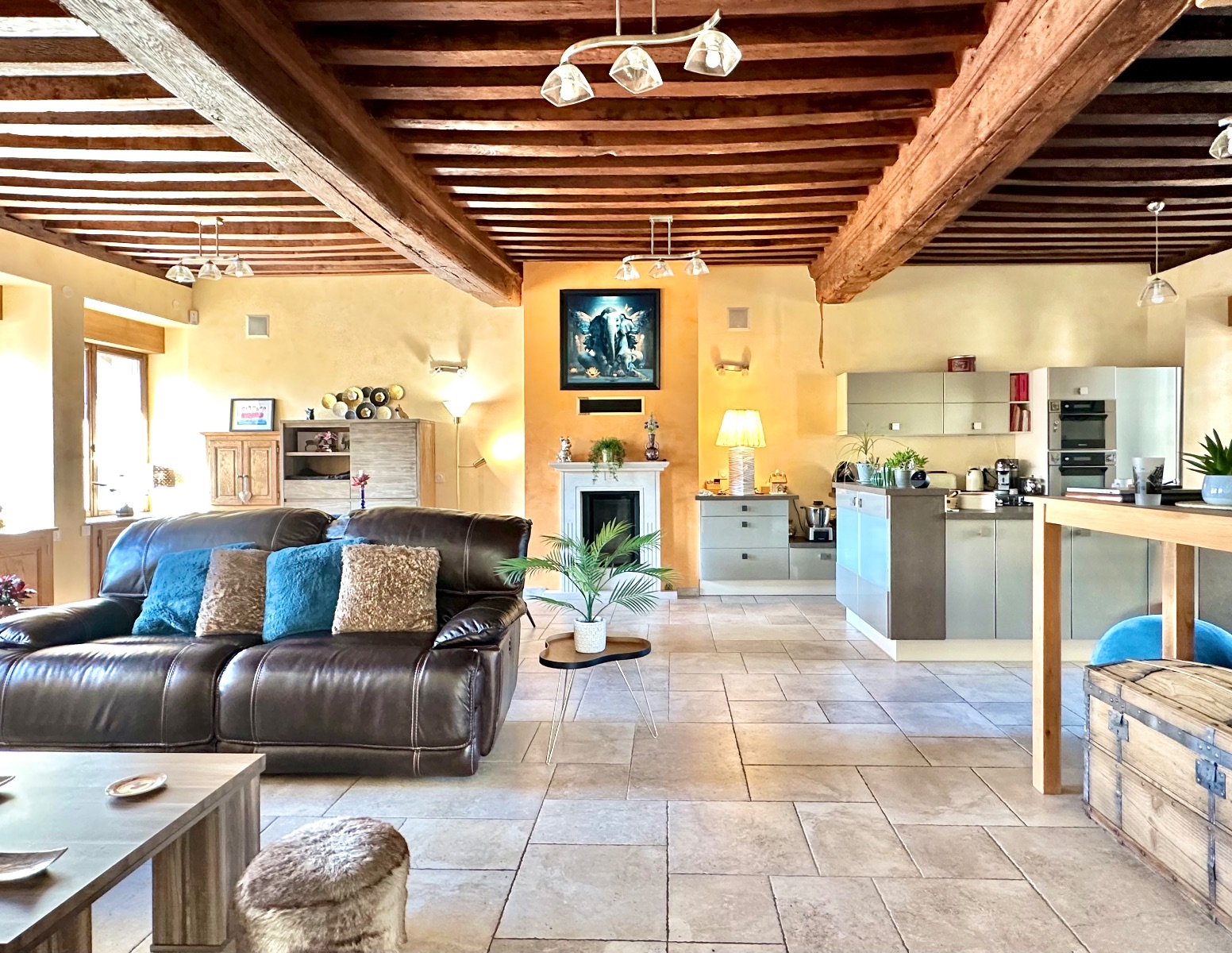 Eine schöne, voll ausgestattete moderne Küche mit Kochfeld, amerikanischem Kühlschrank, Multifunktionsroboter... offen zum Wohn-/Esszimmer, mit direktem Zugang zur Terrasse. Pelletofen. Bibliothek, Flachbildfernseher mit DVD-Player (DVD verfügbar), Bluetooth-Lautsprecher.