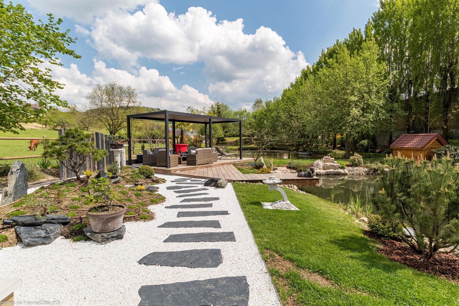 Plus: Herrlicher japanischer Landschaftsgarten voller Blumen mit großem Teich, Pergola und Gartenmöbeln für wundervolle Momente der Entspannung. Sicherer Zugang durch ein Tor (Kinder unterliegen der Verantwortung ihrer Eltern).