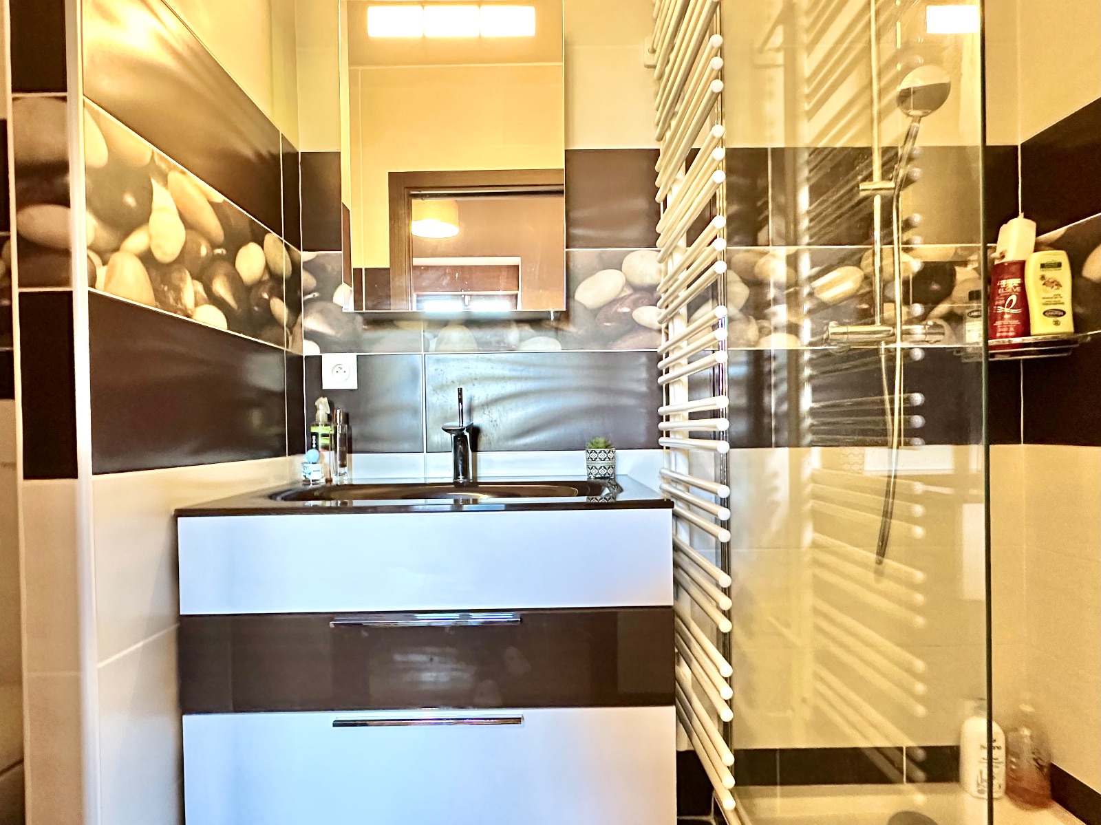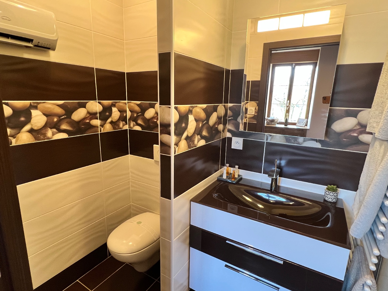 Ein Badezimmer mit Dusche. Separates WC. Reversible Klimatisierung.
