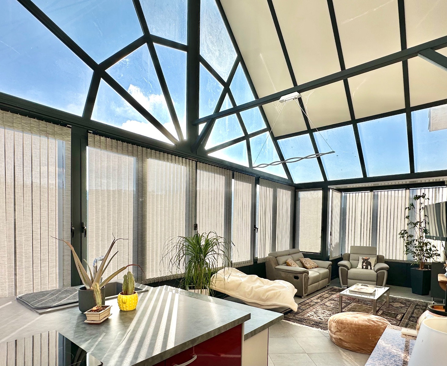 Ein Schlafzimmer mit 1 160 cm breiten Bett, elektrisch. 1 Badezimmer mit Dusche. Separates WC. . Reversible Klimatisierung.
