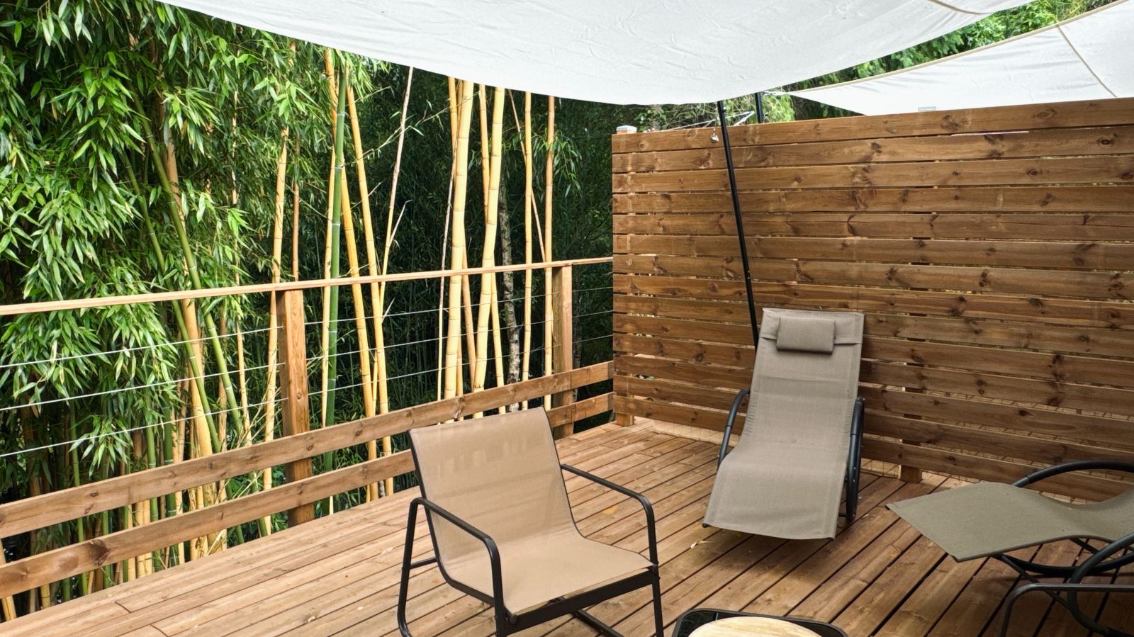 Die völlig unabhängige Gîte Bambou mit einer Fläche von 32 m² bietet problemlos Platz für ein Paar in einem großen Doppelbett (180 x 200 cm) oder zwei Personen in zwei Einzelbetten (Hotelbetten). Mit seinem atemberaubenden Blick auf den großen Bambushain und den Swimmingpool, seinem Schlafzimmer mit Bad (WC und offener Dusche), unabhängig vom Wohnzimmer und der ausgestatteten Küche, bietet diese Gîte völlige Autonomie.