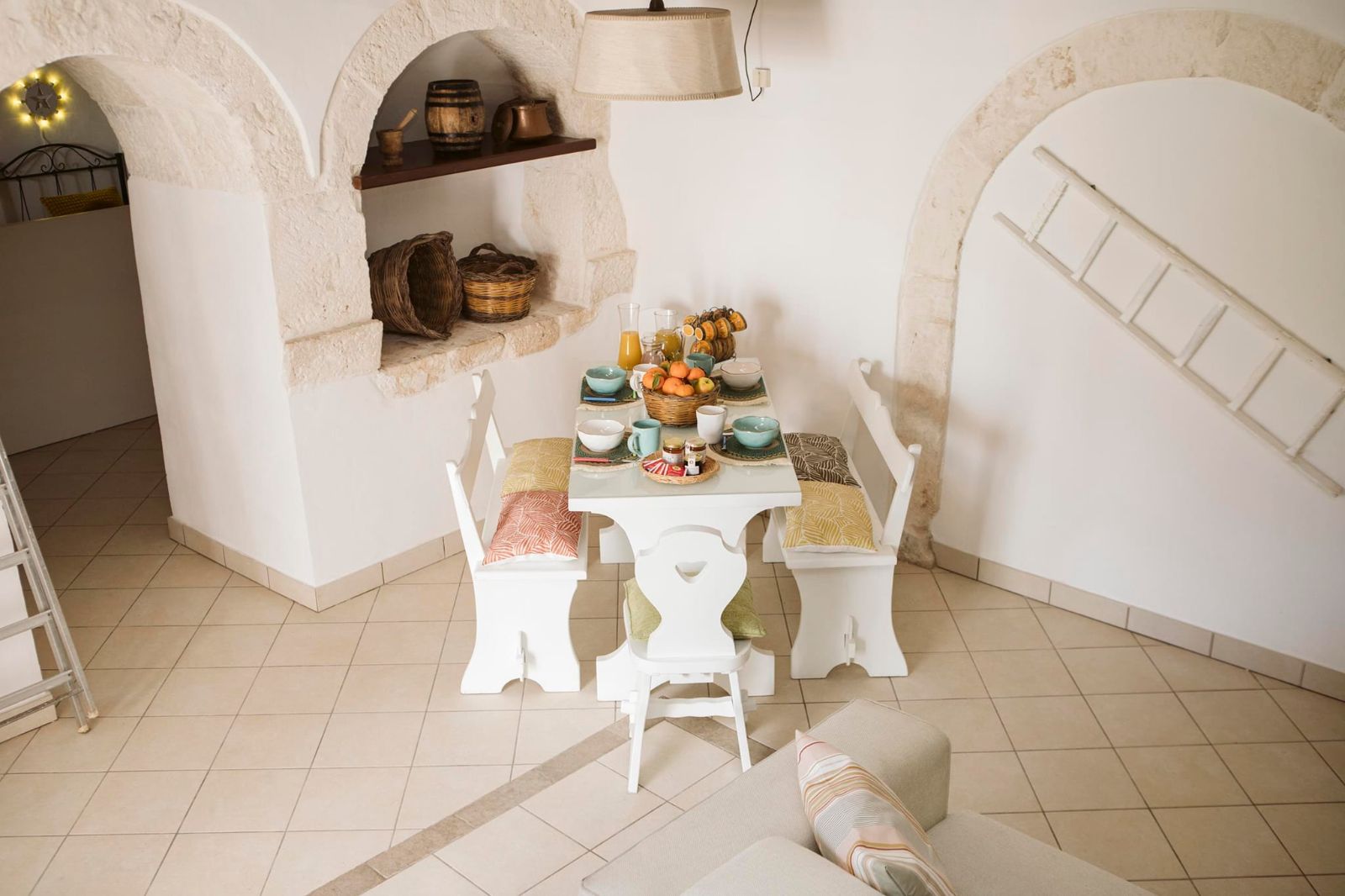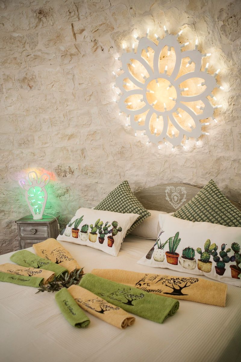 Die TRULLI FICO D'INDIA bestehen aus einer großen, ausgestatteten Küche, von der aus Sie auf verschiedene Räume zugreifen können: ein privates und großes Doppelzimmer mit der Möglichkeit, ein Einzelbett hinzuzufügen, ein geräumiges Badezimmer mit originalen historischen Details und einen privaten Innenhof mit idealen Sofas für einen angenehmen Aperitif oder zum Lesen und dann weiter zum riesigen, etwa 13 Meter hohen Trullo mit seinem geselligen Raum, der aus einem antiken Tisch und Bänken, einem Fernseher, einem Doppelschlafsofa und einer Eisentreppe besteht aus Schmiedeeisen und Holz, das zum Zwischengeschoss führt, wo sich das Doppelbett, Nachttische und eine Kommode befinden