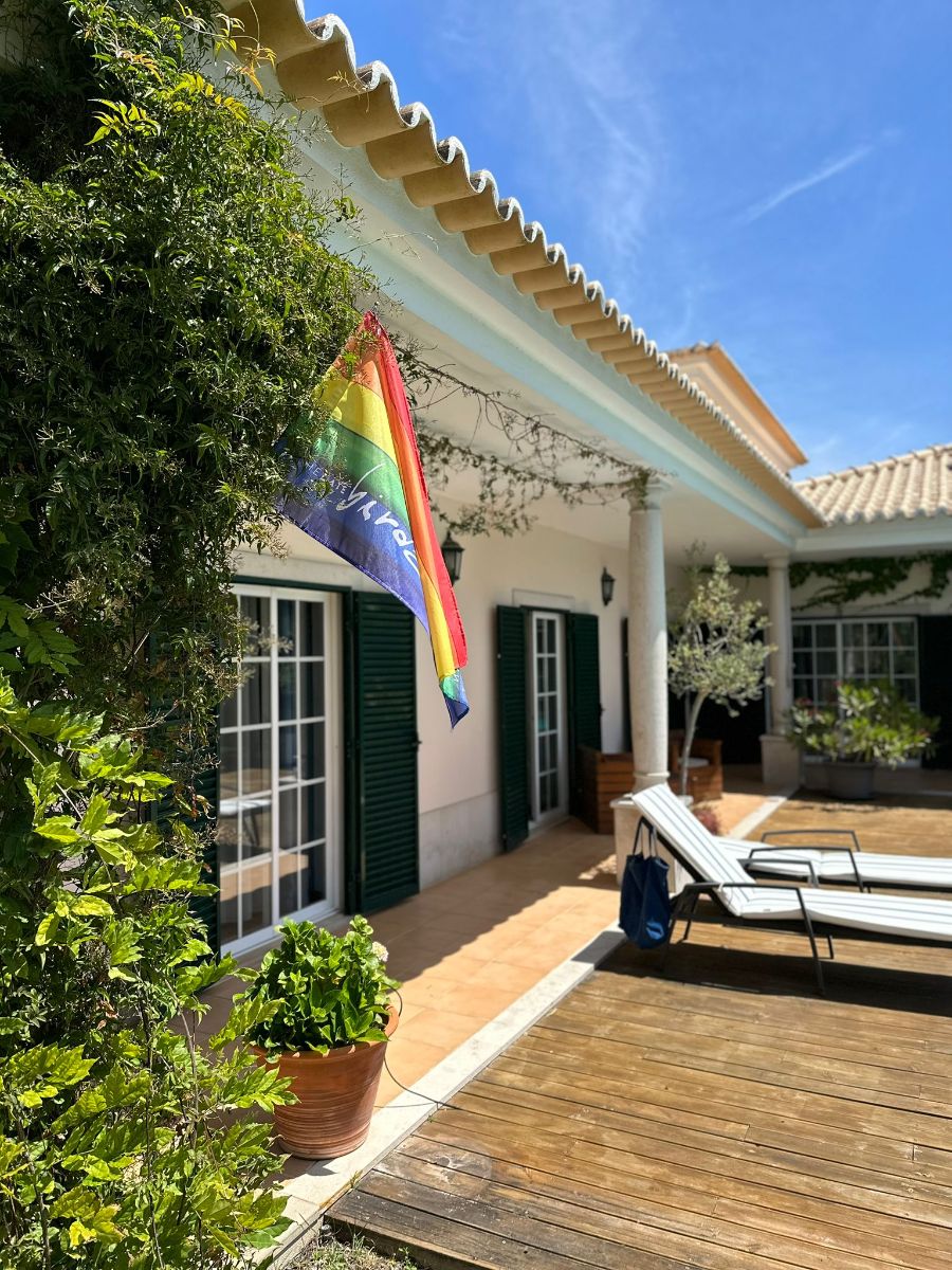 Das Haus verfügt über 8 Zimmer, jedes mit eigenem Bad, sowie über einen großen Wohnbereich, einen Pool und einen Garten. Es liegt nur 15 Gehminuten vom Gay-Strand von Meco entfernt, einem der drei Gay-Strände im Raum Lissabon, neben Costa da Caparica.