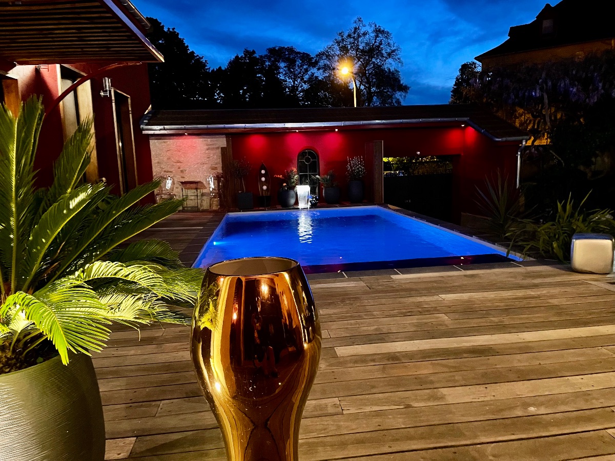 Vorbei an der Veranda erlebt man einen Hub von Herzen den ummauerten Garten zu entdecken, eine Insel der Ruhe und des Friedens, wo zwei Atmosphären koexistieren. Auf der einen Seite das Haus, renoviert, eingerichtet und im Stil der Zeit eingerichtet, bietet zwei große charmante Suiten mit vielsagenden Namen: Fragonard und Chateaubriand. Auf der anderen Seite in einem alten Druck, Duplex-Diderot, zeitgenössischer Inspiration, eine gemütliche Deck öffnet sich.