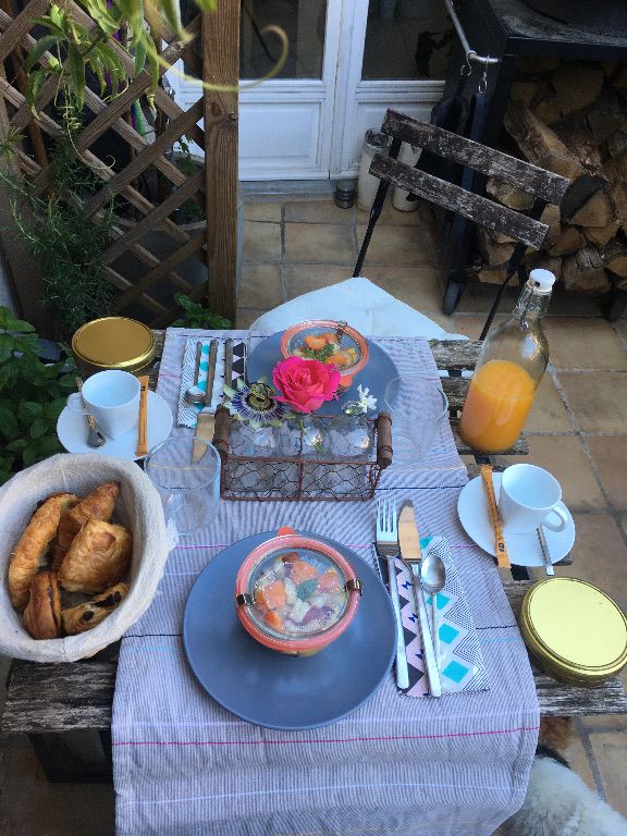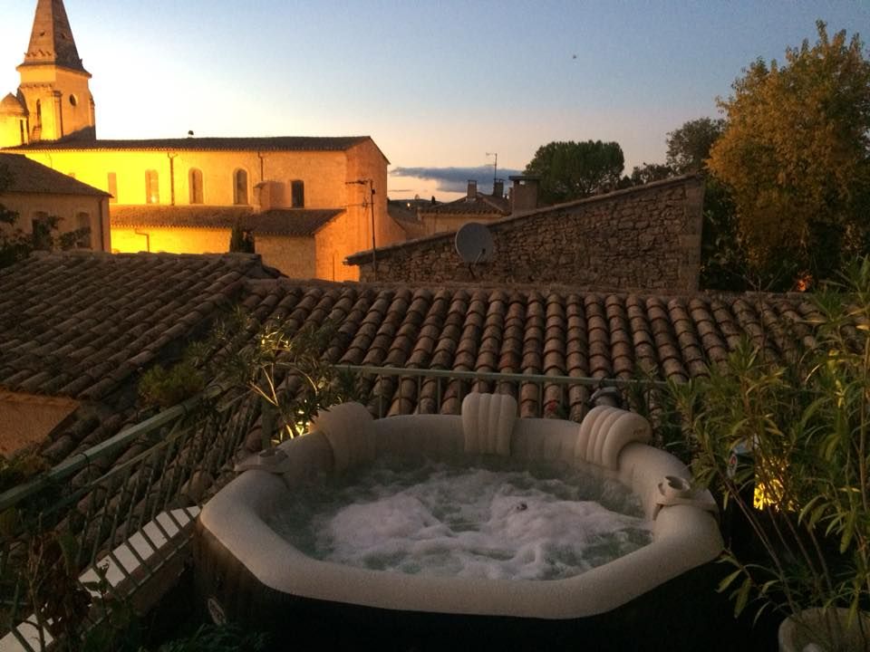 Im Herzen eines Dorfes in der Metropole Montpellier Méditerranée, Zimmervermietung in einer historischen Villa. Gemüsegarten auf der ersten Terrasse mit Pool und Gartenmöbeln.