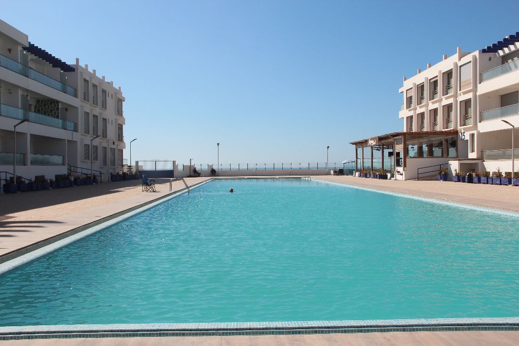 built around a garden & a 70 meter swimming pool reserved for residents facing the Aourir beach, 10 km from Agadir (about 10 minutes by car)., 35 km from the airport (about 1 hour by car).