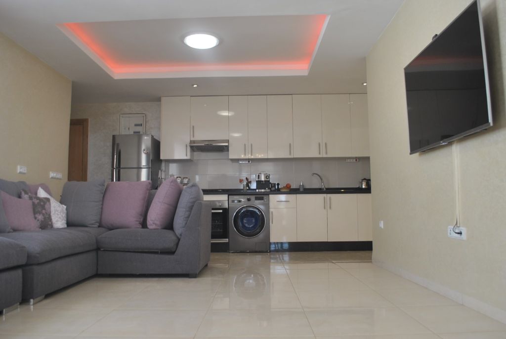 1 fully equipped kitchen (stove, oven, fridge-freezer, washing machine, microwave, toaster, coffee machine, kettle, etc.) open onto a large air-conditioned living room (reversible cold / hot air conditioner) fitted with a TV and a large sofa. 1 separate guest toilet is included.