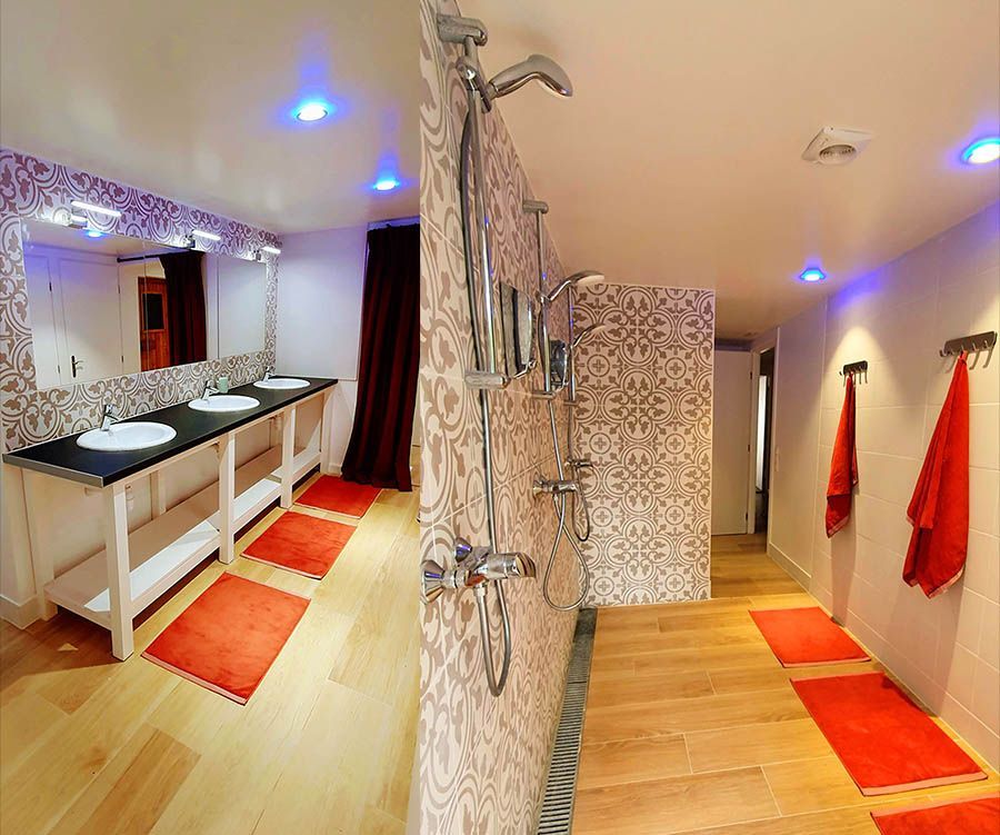 The common sanitary facilities are brightly lit with direct access to the garden. A bathroom is specially dedicated to people with reduced mobility.