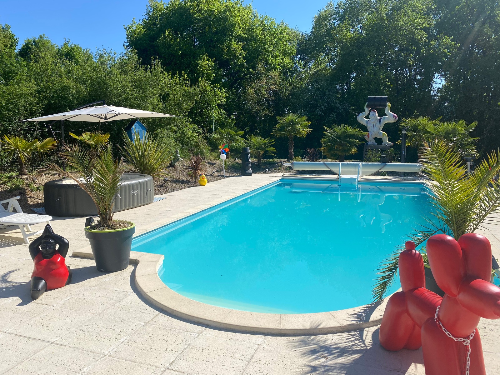 Large comfortable house, park of 3500 m², many trees, with 10x5m swimming pool, equipped with deckchairs, garden furniture, gazebo for lunches with lounge and dining room on the terrace.