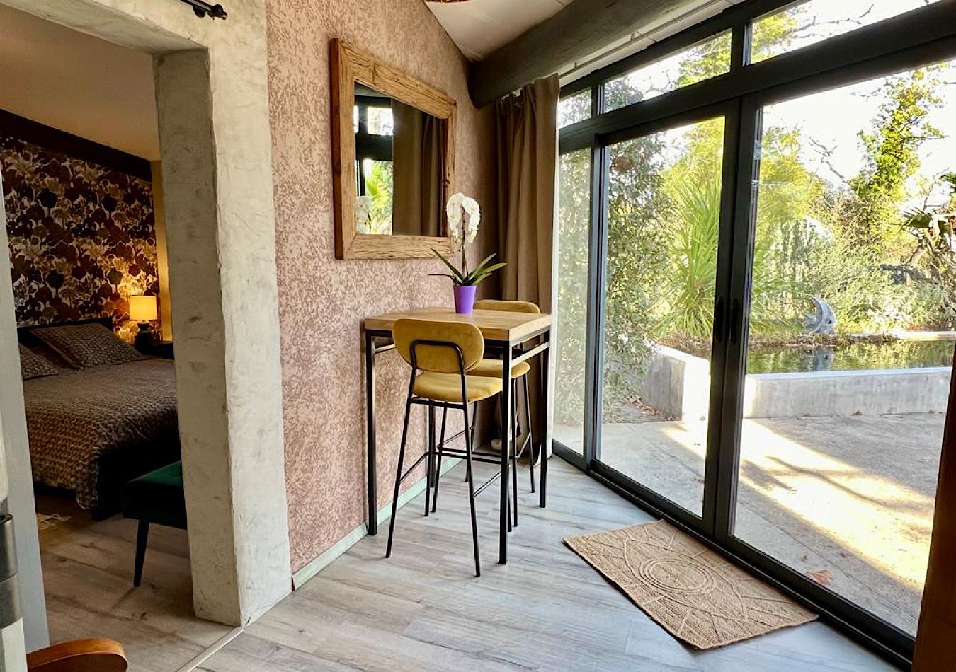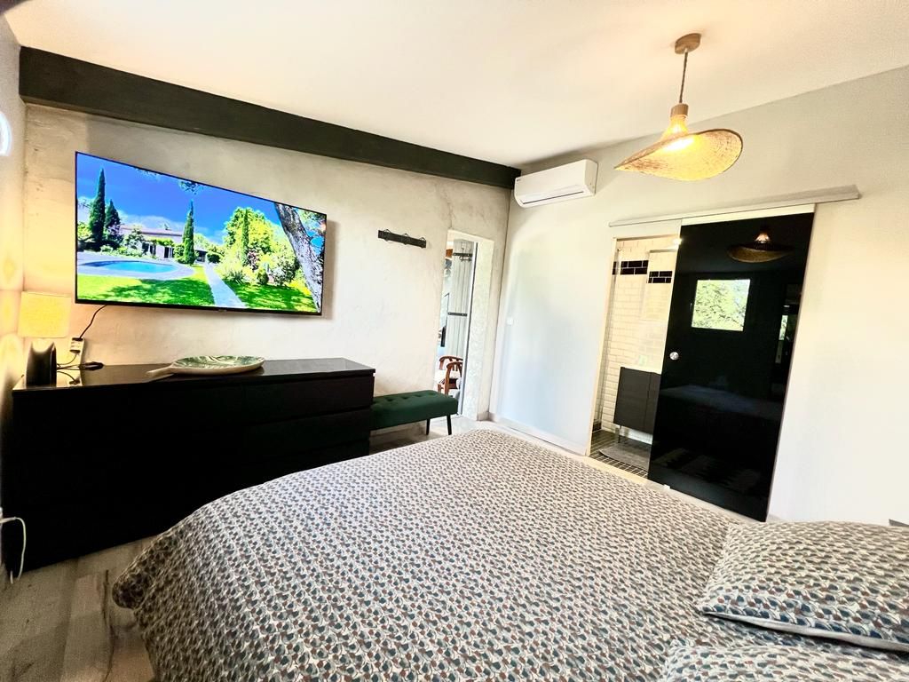 Located in a villa 5 minutes by car from Isle-sur-Sorgue, in the countryside, we offer a room with private bathroom for two people.