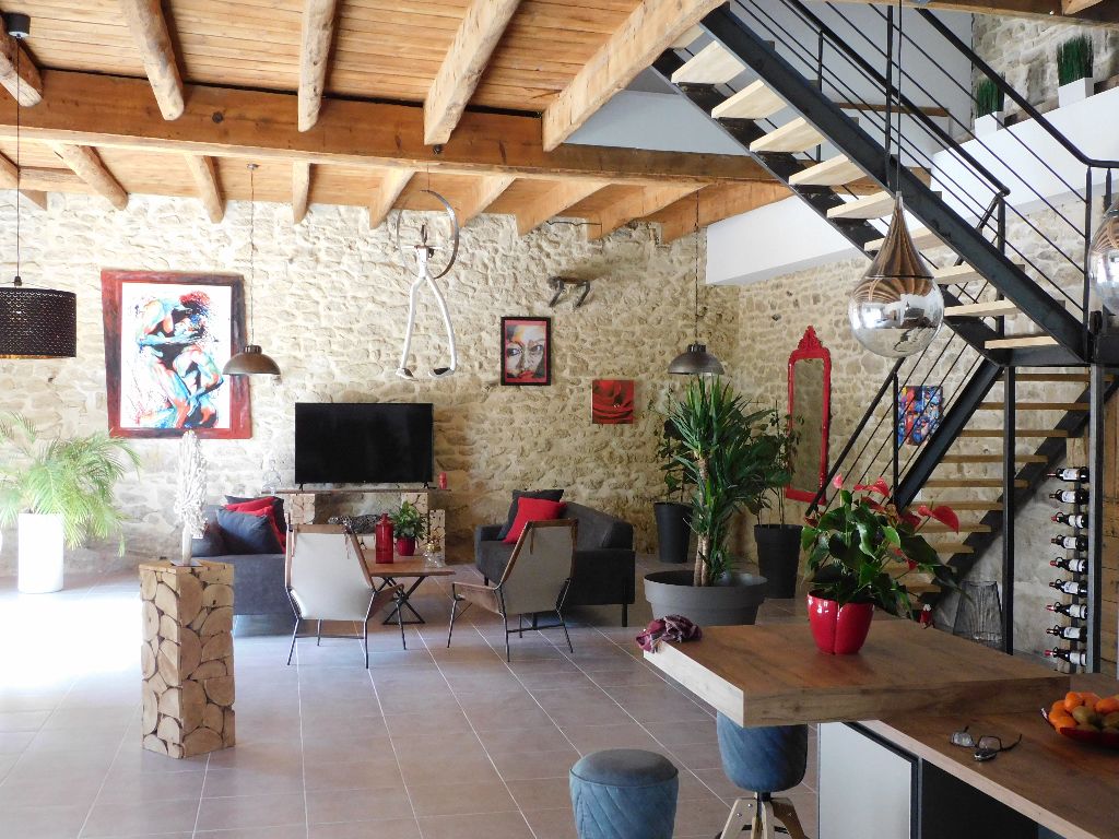 « Très belle maison , restauration style loft magnifique Espace jacuzzi / piscine / sauna au top et très agréable le soir quand il pleut , où au retour d'une excursion dans la journée Chambre bien équipée Très bon accueil de Franck et Jean Luc , sans oublier leur 2 adorables chiens Un bon petit déjeuner pris avec les autres clients dans la bonne humeur , ou lors d'un repas concocté par notre hôte Je n'ai pas eu de problème à stationner à ma voiture à proximité malgré que la maison soit en plein centre du village Bref une bonne adresse , où je reviendrais avec plaisir »