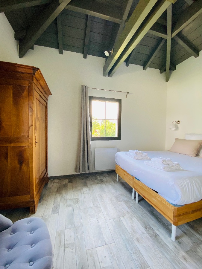 The floor of the house, with independent access, offers 2 Suites, East and West, of 40 m2 each (created in 2023), equipped as studios, with a kitchenette (microwave, refrigerator, sink, kettle, toaster , Nespresso coffee maker). No hotplate.