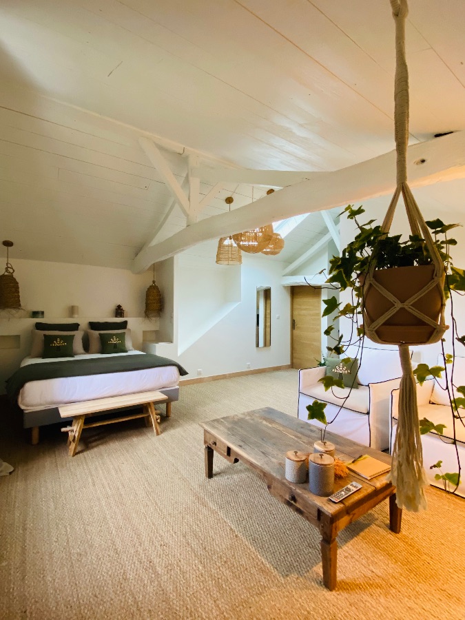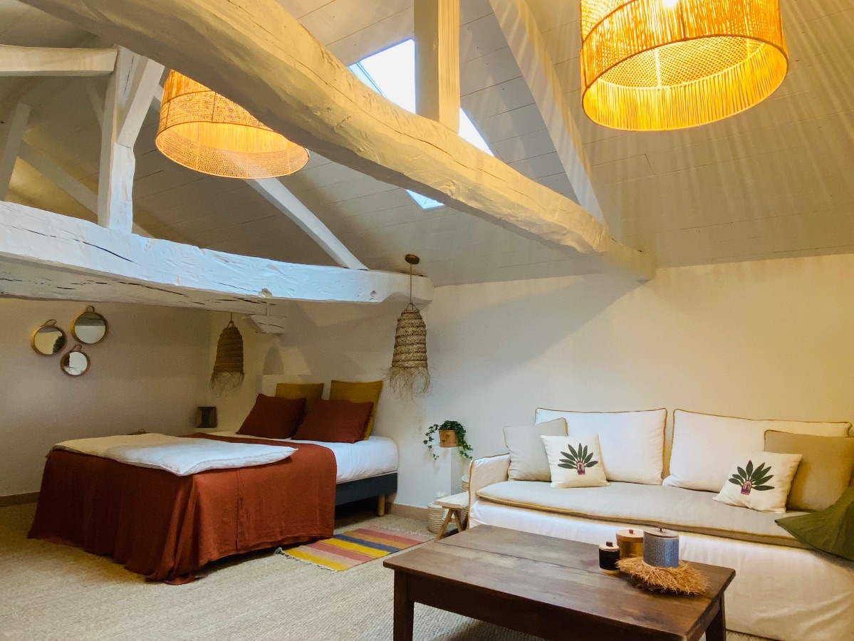 The east suite also has a small cocooning lounge, in the attic, equipped with cushions/bench, which can be used as an extra bed for 2 people.