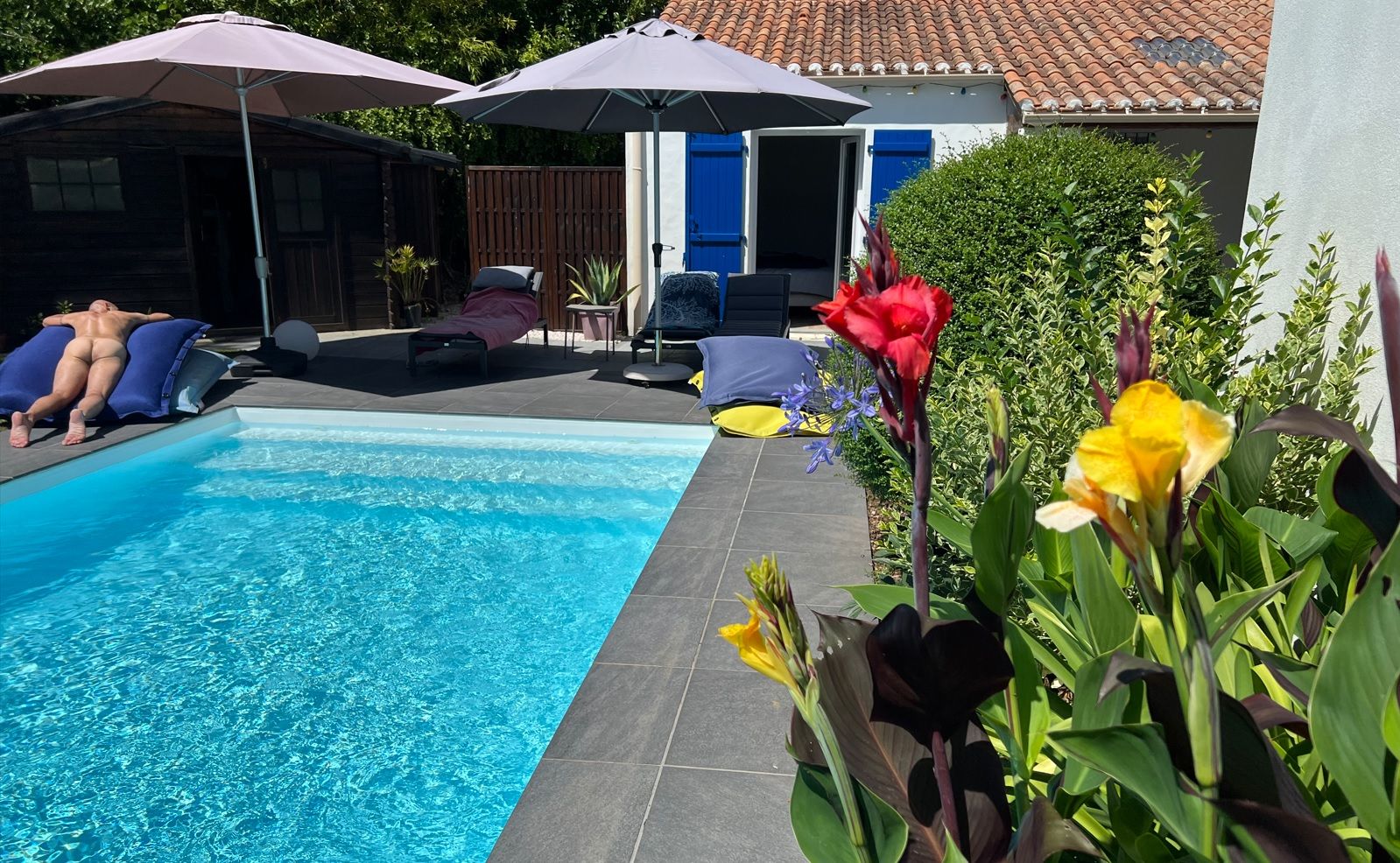 In season (from June to September), you can enjoy the heated pool, and sunbathe freely on the deckchairs in an enclosed garden - not overlooked - facing south. Naturism possible.
