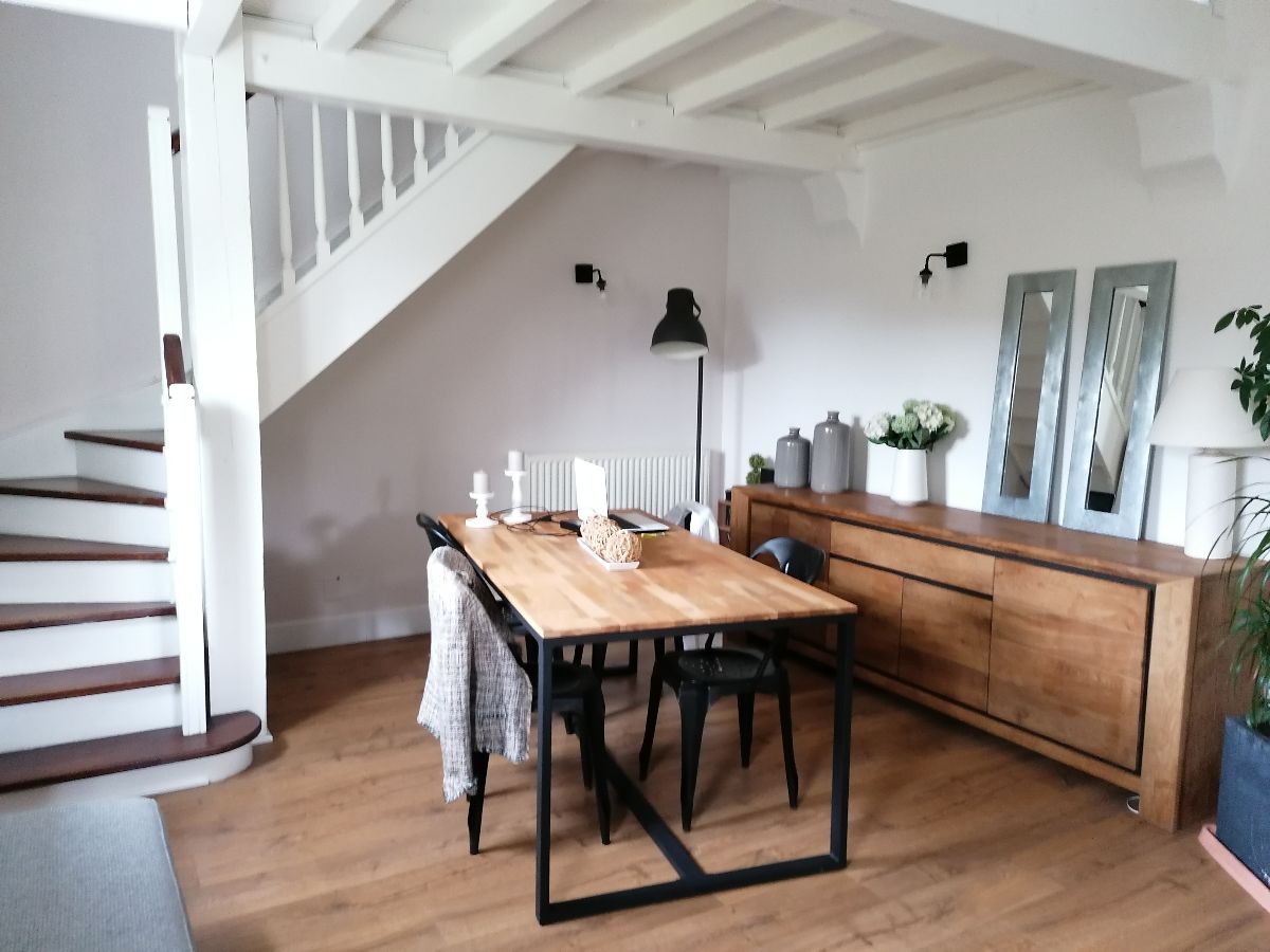 The bedroom is upstairs in the house, equipped with a 140cm bed.