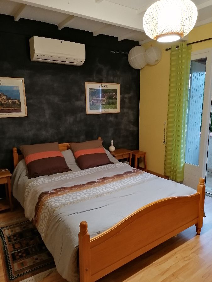 Private part of the Hosts on the 1st floor: Bedroom with balcony equipped with a 140cm bed (1 or 2 people). Separate shower room and wc. Reversible air conditioning.