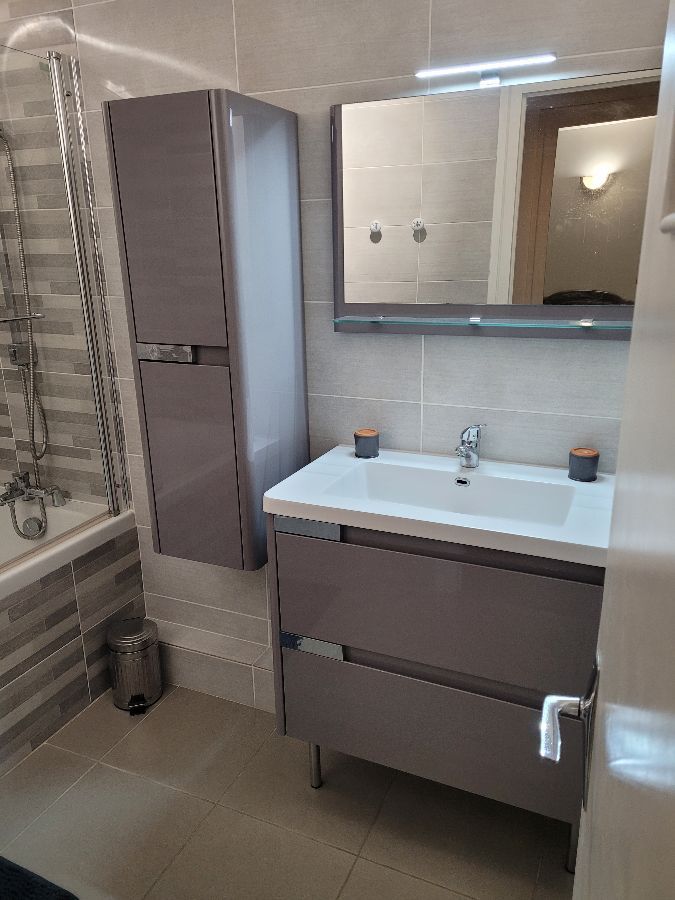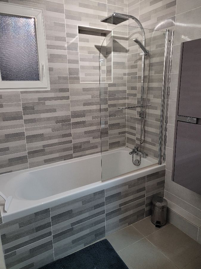 In a modern house, 2 bedrooms with their private bathroom and toilet.