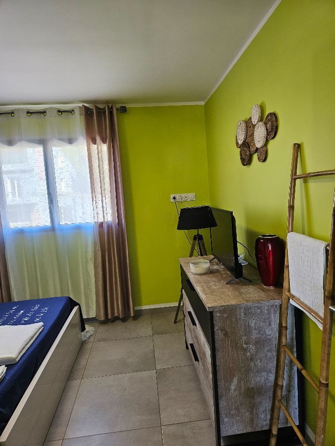 In the air-conditioned room you will find a TV, a chest of drawers to store your belongings as well as bathroom linen which will be available.