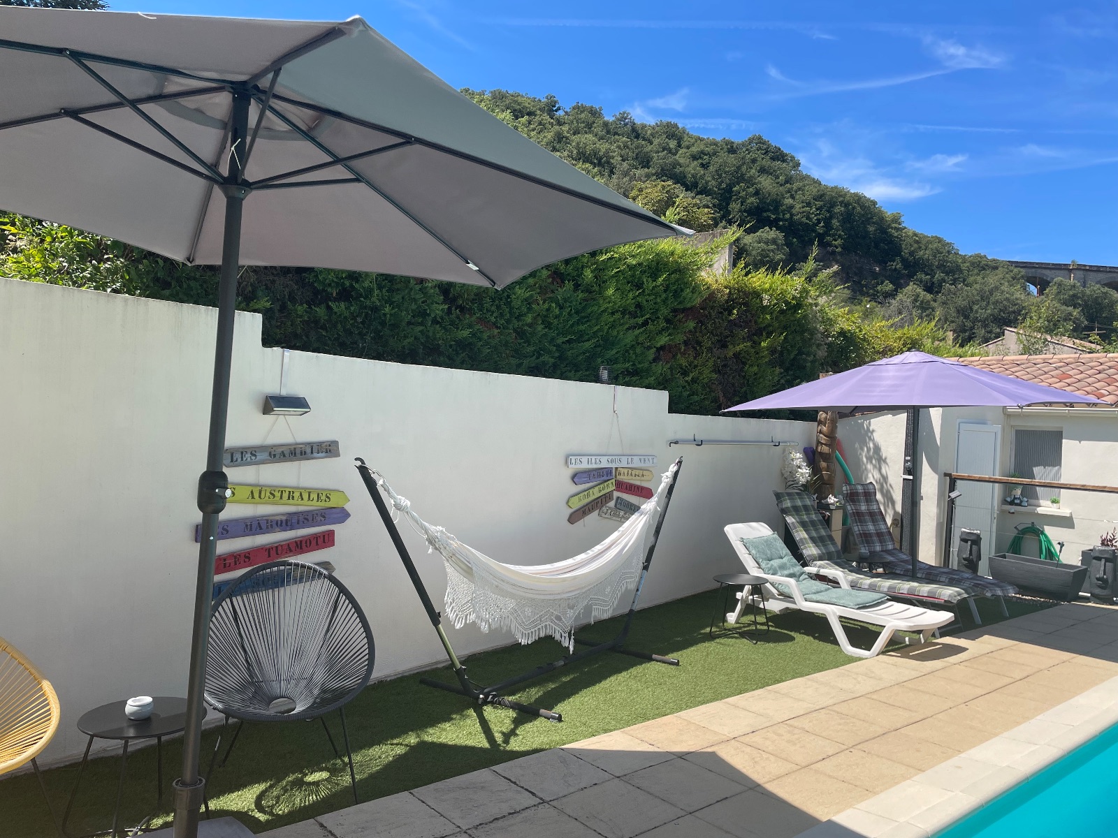 At La Tour Sur Orb near Bedarieux, Lodève, Clermont l'Hérault, come and relax by the swimming pool. Naturism allowed inside and outside with a good welcome cocktail