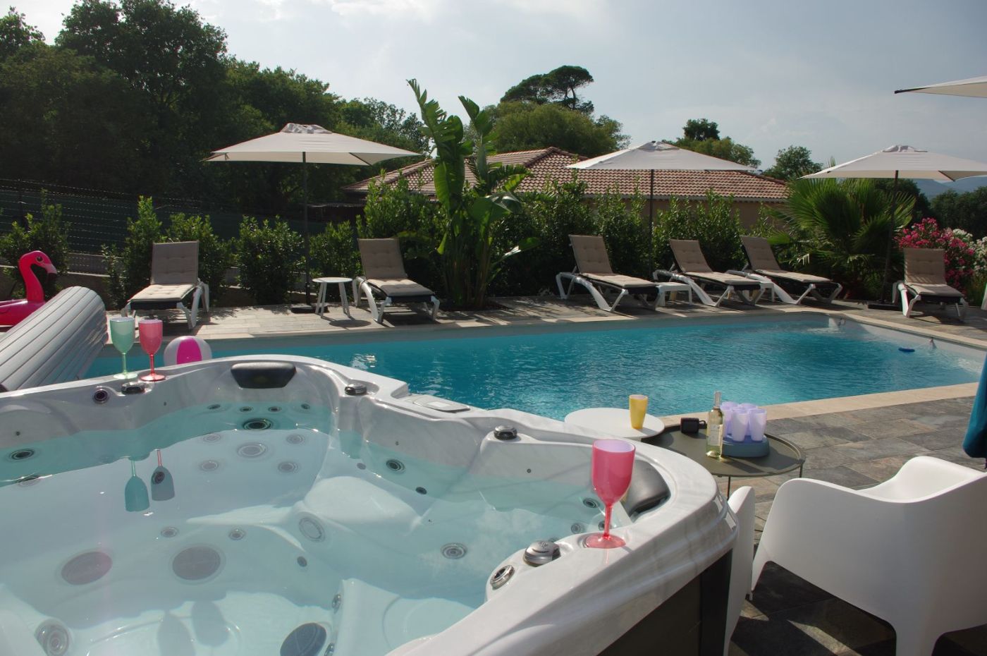 In the services, you have access to the 10mx4m salt swimming pool all in a setting of Mediterranean plants as well as the well-being Spa, both surrounded by comfortable sun loungers for a relaxing and pleasant stay far from stress and noise from big cities. (Pool towels included)