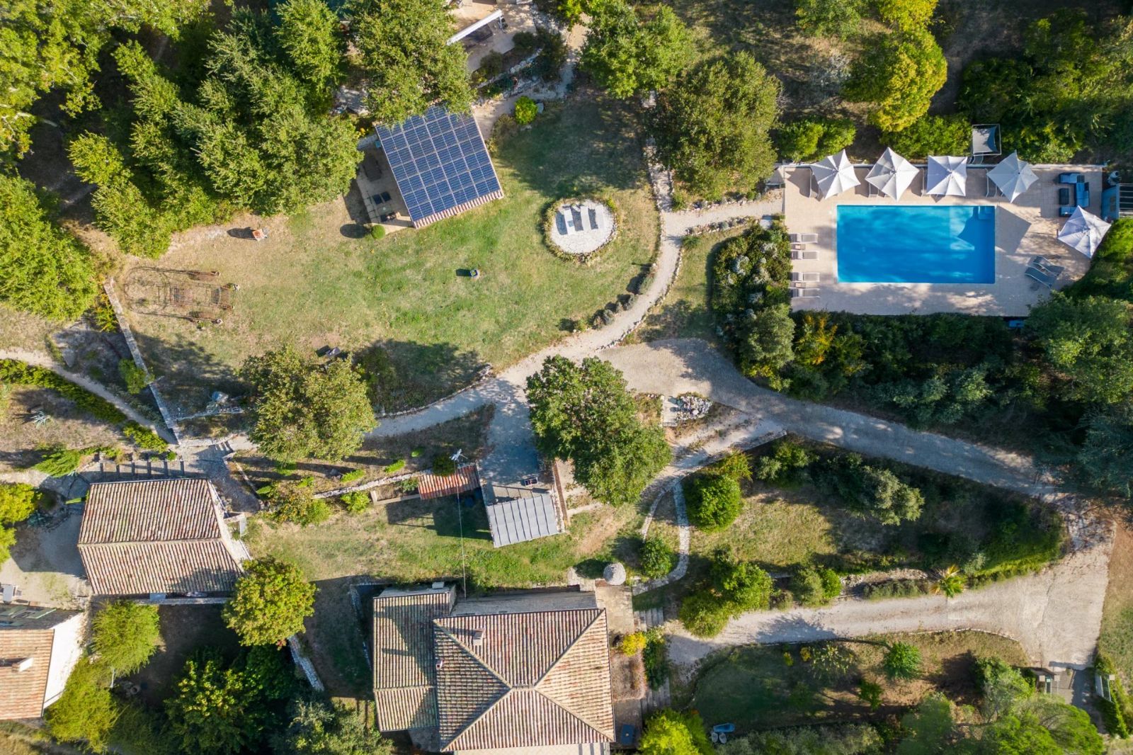 - Expansive Grounds: Encompassing 3.1 hectares (7.7 acres) of landscaped gardens, orchards and terraces, the estate provides ample space for outdoor living and entertaining. There is a large private off-road car park for guests as well as dedicated covered parking for the owners beside the main house.