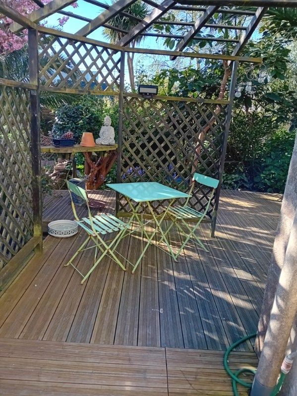Outdoor terrace with garden furniture for dining and enjoying an aperitif, with a barbecue available.