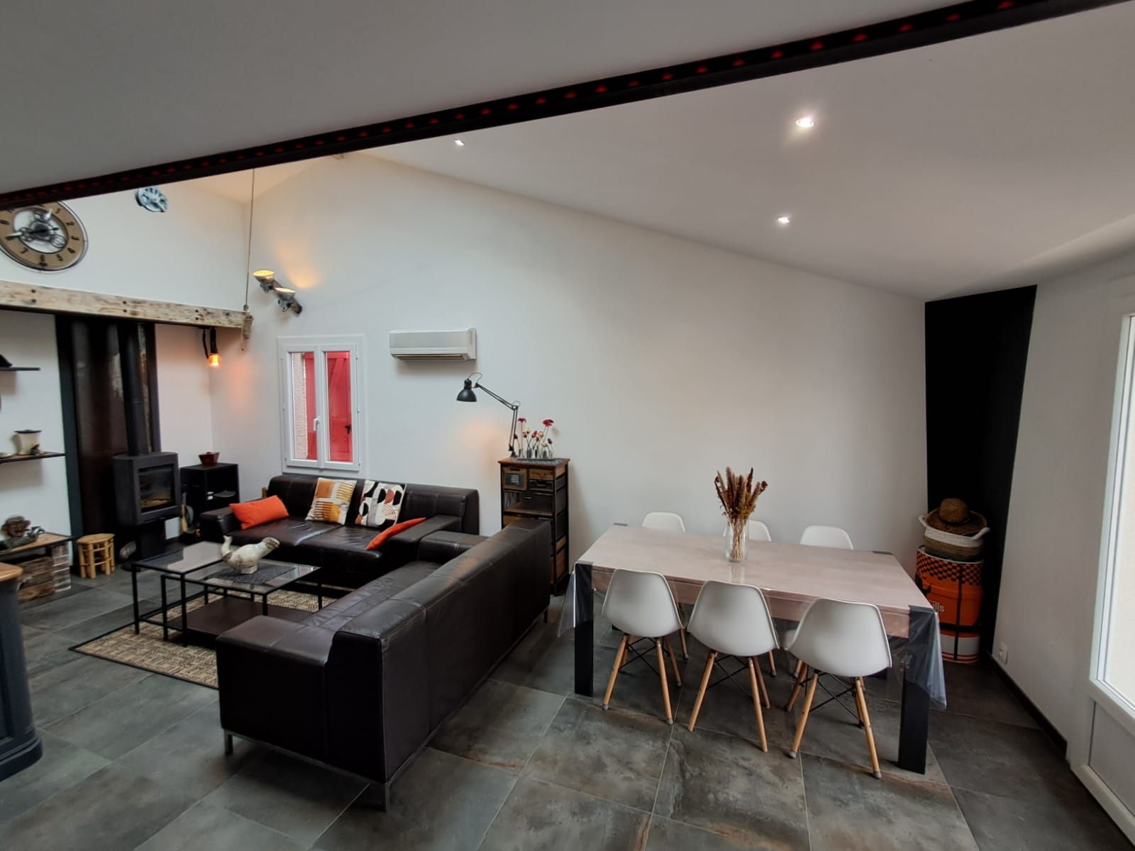 Inside, you will find a large open-plan living area with:
