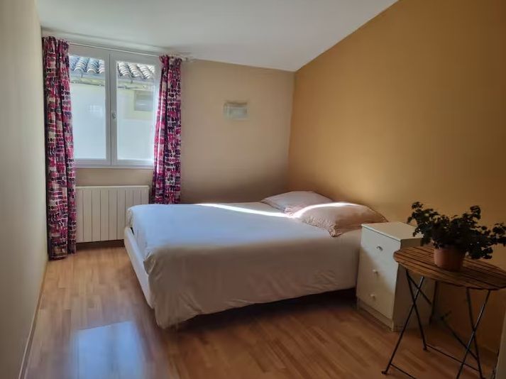 The room I offer is very simple (no air-conditioning or TV, for example). It is located on the second floor of a village house in the historic center of Aigues-Mortes. It has a double bed and a large closet where you can store your luggage. I live in the same house, and the bathroom and toilet are shared with me. Municipal parking is available nearby.