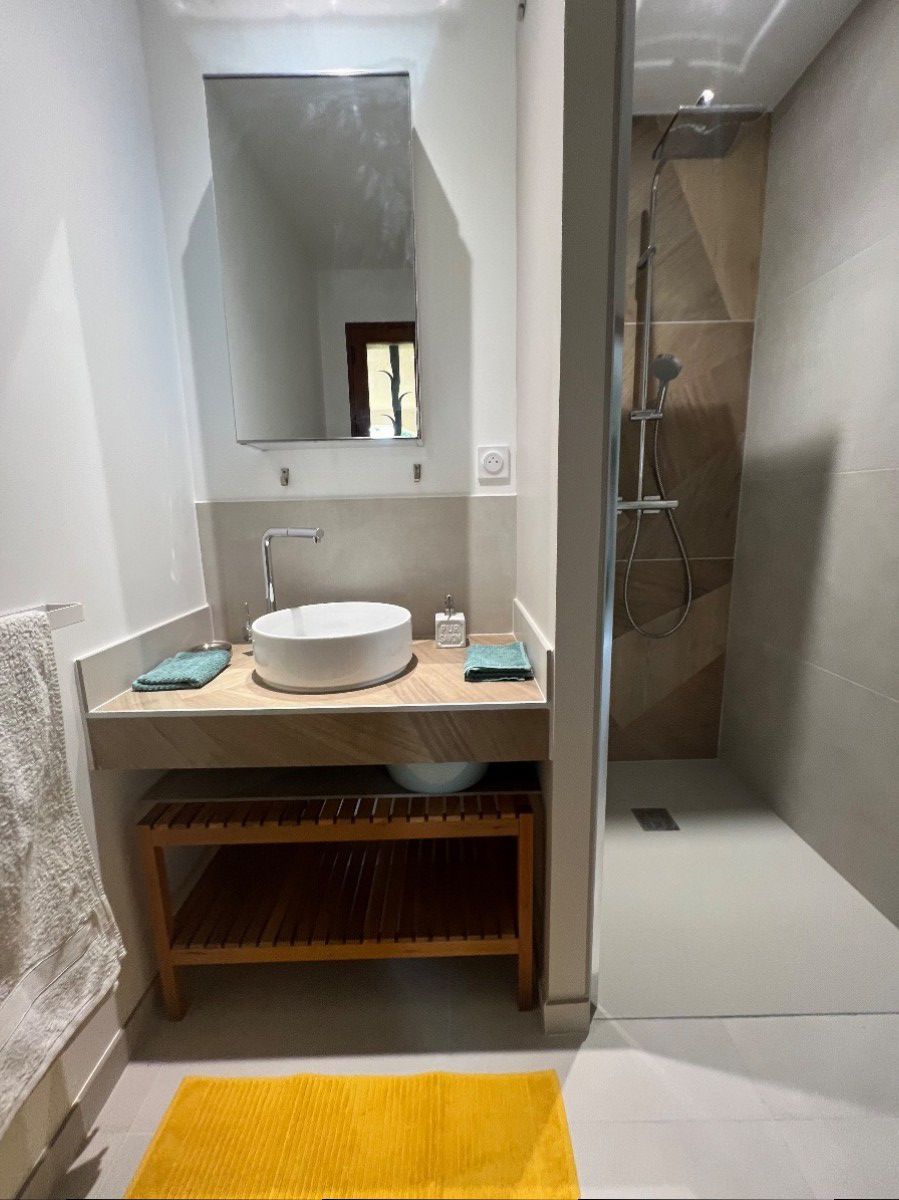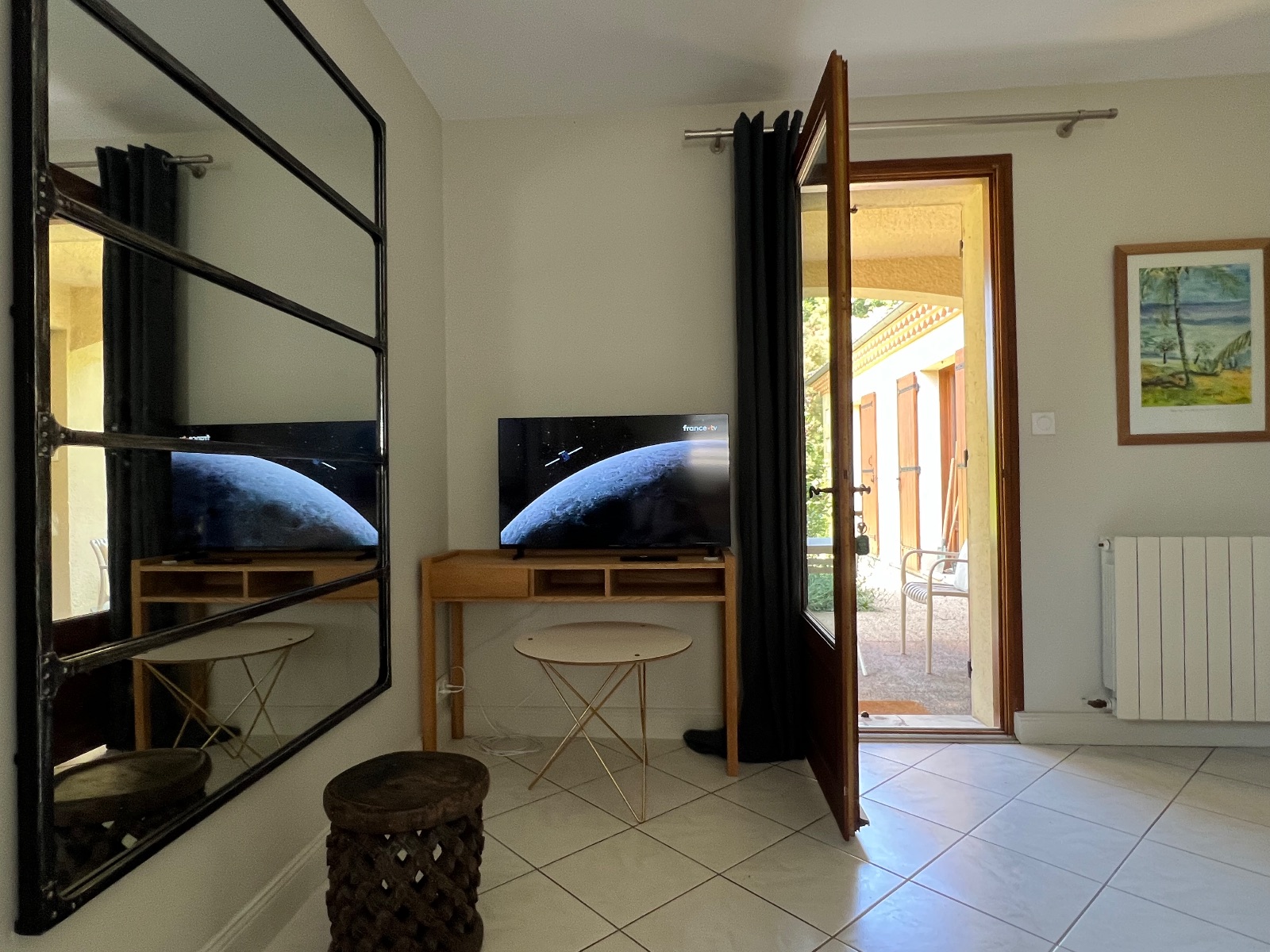 For a stay or short break (minimum 2 nights), a recently renovated studio on the ground floor with a private entrance, adjacent to the main house, with a large shared garden. Private bathroom with toilet and open terrace overlooking the garden. Private parking at the entrance of the property.