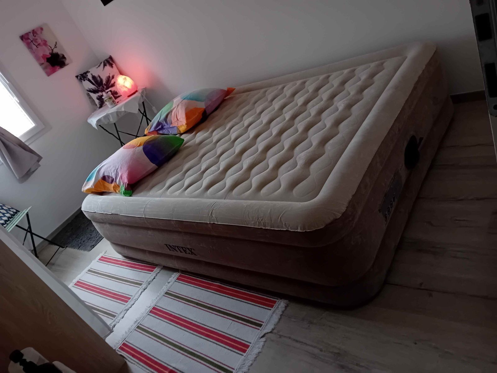 Hello, based in the Vendée, 30 minutes from Nantes and 30 minutes from La Roche-sur-Yon, I offer you a night in the countryside on an air mattress that will adapt to your body! Quality double bed, 190 x 160 cm and 55 cm high, very comfortable.