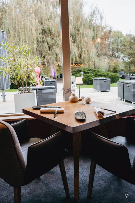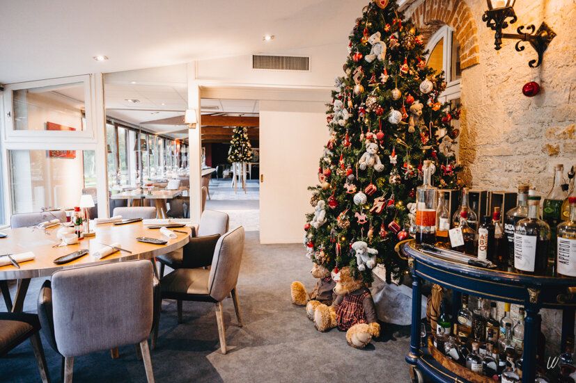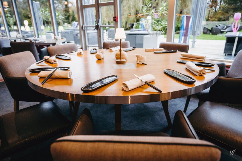 The restaurant Les Épicuriens invites you to enjoy a refined culinary experience in an elegant setting overlooking the park, with its majestic weeping willow and enchanting bamboo grove.