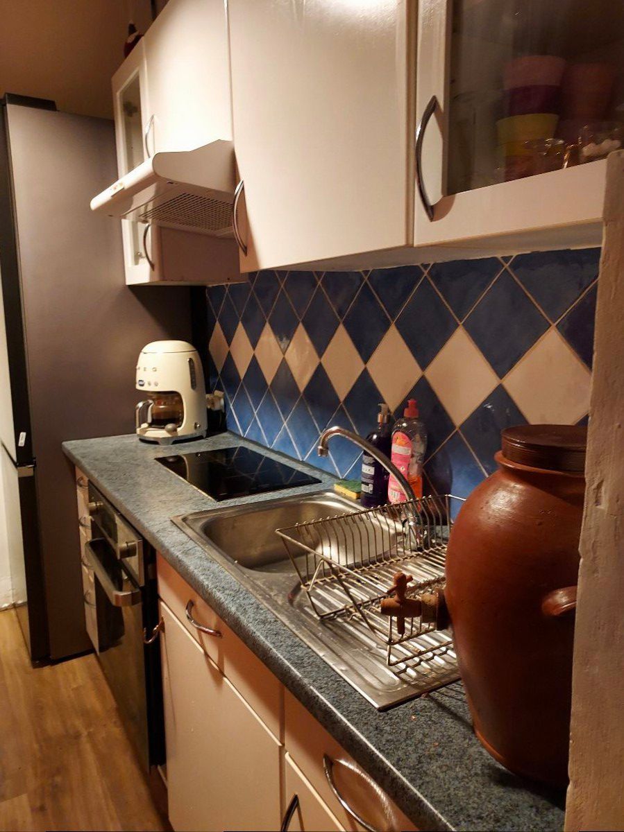 La Cuisine dispose de plaques à induction, d'un grand frigo et d'un four. Machine à café Smeg, gullie pain, bouilloire. Elle est entièrement équipée.