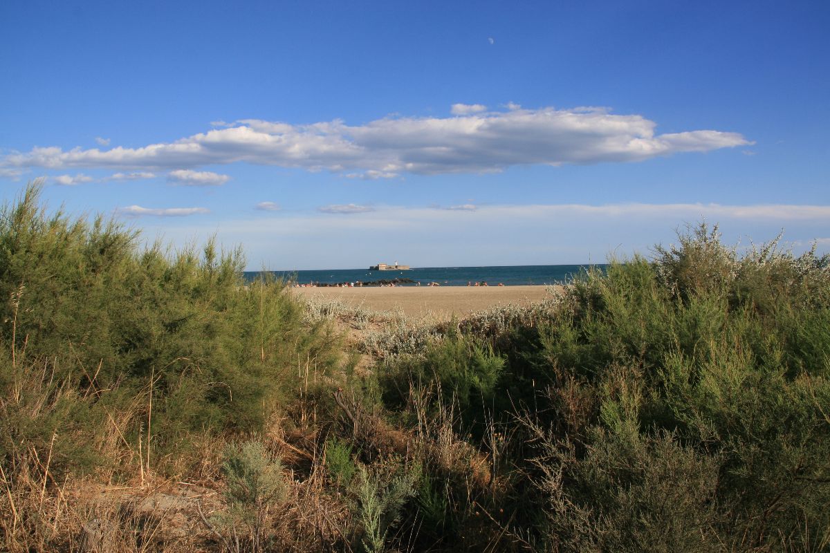 From Montpellier, on the Grand M roundabout, head towards Sète along the N 112( name of the road). After Sète follow the road signs that mention Cap d'Agde and the "Village Naturiste". The beach is on the "Héliopolis" grounds.Walking distance is about 1km heading west.