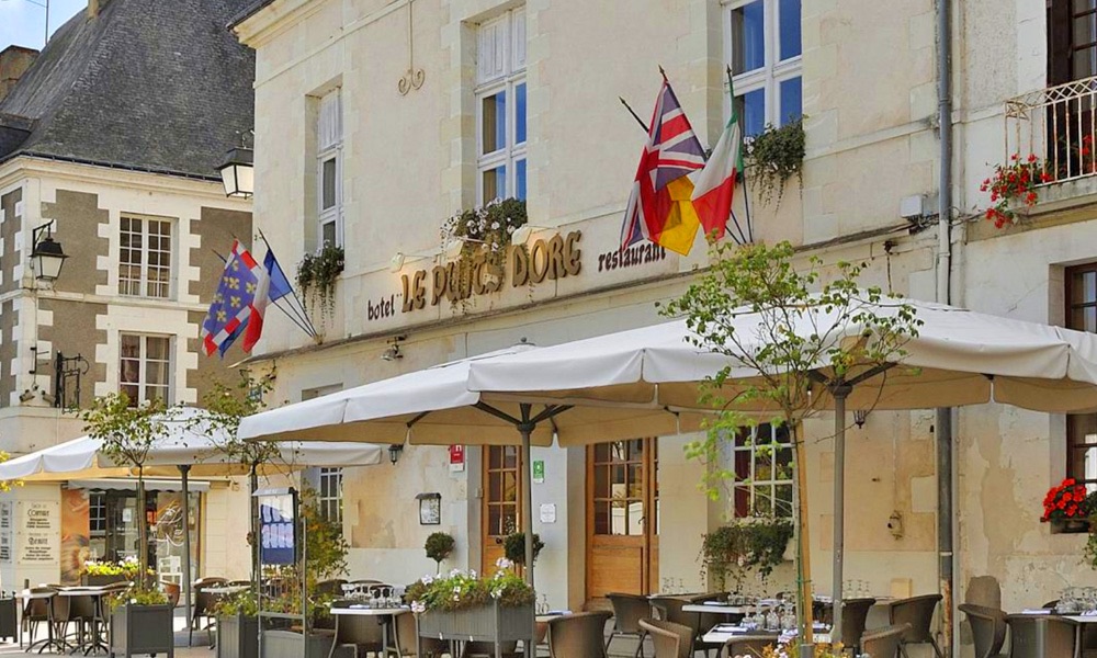 Situated in the heart of Touraine in the small fortified town of the Cardinal of Richelieu, the hotel Le Puits Doré immortalizes a hotel tradition which began in 1632. This character building has 25 charming rooms. This 2 chimney classified Logis has preserved the elegance of the buildings of that period with its stone walls and its internal shutters. Our team will assure a warm welcome and will be delighted to guide you during your stay in the Valley of the Kings classified in the UNESCO world heritage. Our establishment also has the Tourism and handicap label.
