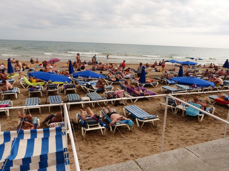 Grab a towel, lotion and sunglasses: Spain’s hottest bodies soak in the sun here. Right across from Hotel Calipolis, between the life guard station and picnic restaurant–and more muscle guys than you can toss a stick at !