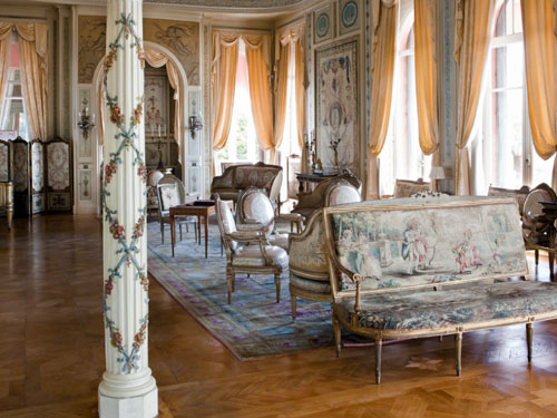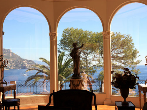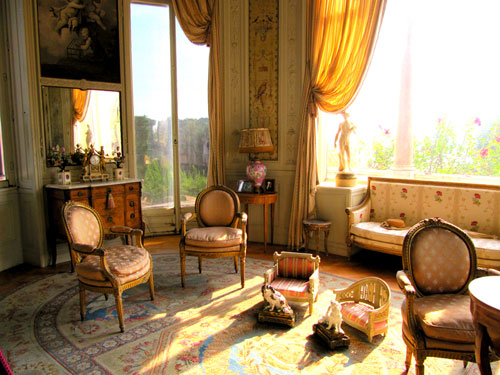 The extensive mansion is just GORGEOUS and overlooks the Mediterranean Sea. It's filled with antique furniture, old master paintings, sculptures, and a huge rare collection of porcelain. The nine gardens that surround the home each have a different theme: Florentine, Spanish, exotic, stone garden, Japanese, rose garden, and more. I love the gorgeous gardens filled with palm trees, fountains, statues, basins, water lilies, aquatic plants, and stunning cypress trees. Inside the home gets even better with ornate molding, French provincial furniture, and even some Venetian style pieces. The wall murals and painted ceilings look just as great.