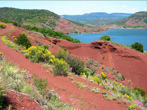 The Presqu'ile a Liausson is a peninsula which is 500 meters wide and 1 km. long extending into the lake (Lac du Salagou). The small bays on either side are popular nude sunbathing areas. Sunbathers are almost exclusively gay men.