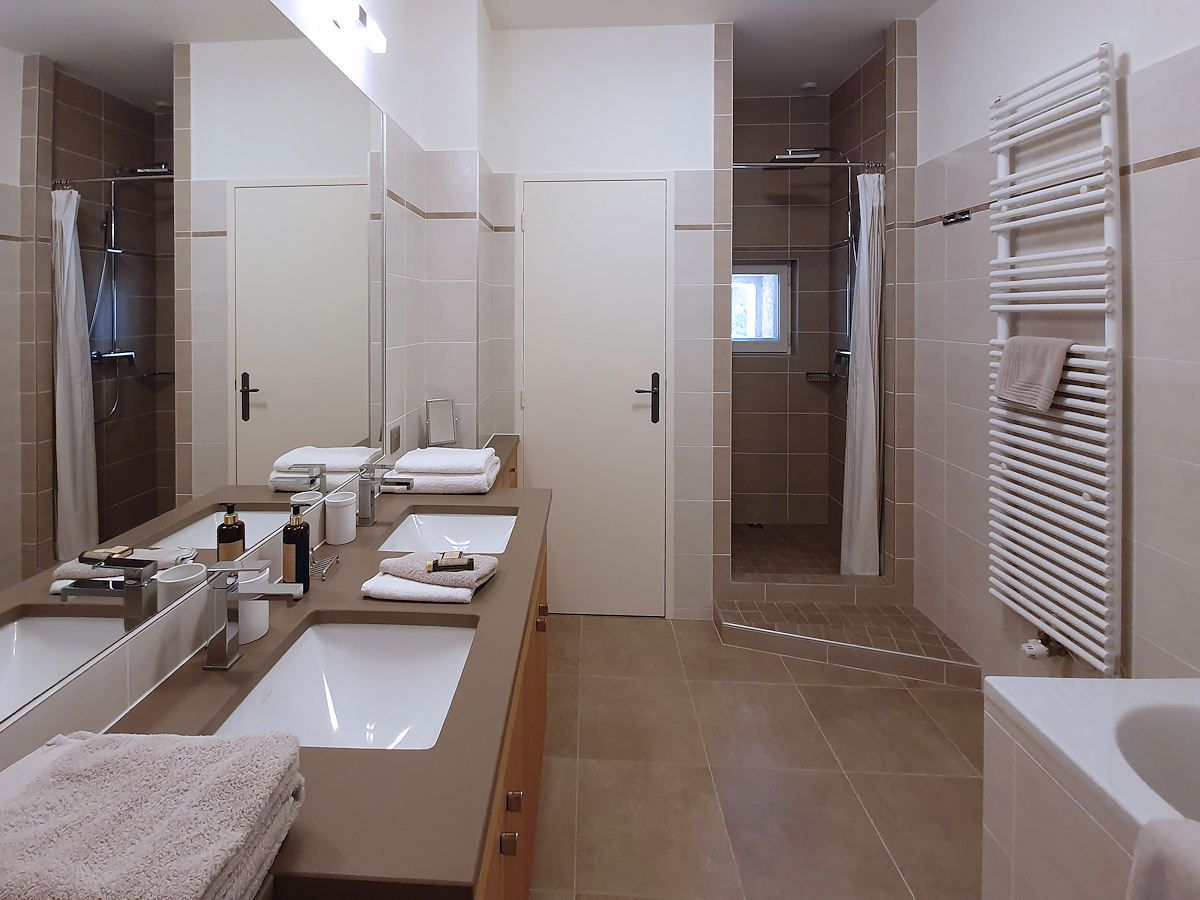 In each room, a living area, a large bathroom with bathtub, large walk-in shower and separate toilet. And for each one, an independent access.