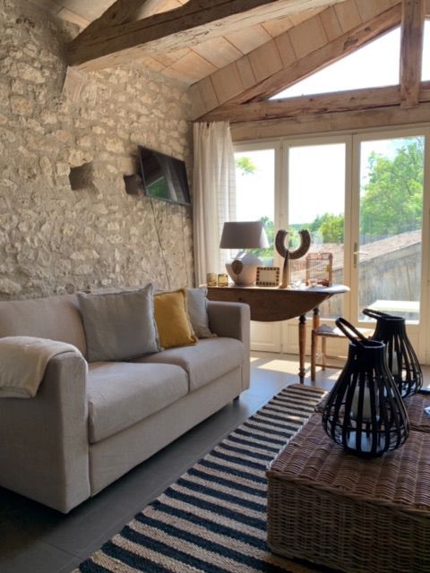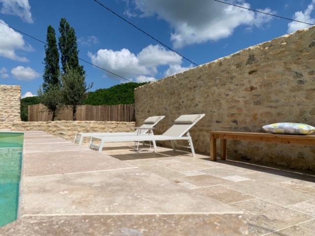 The house is build in authentic French “pierres apparantes” located in the middle of the vineyards of CAHORS, on the top of a small hill overlooking the quiet green environment.